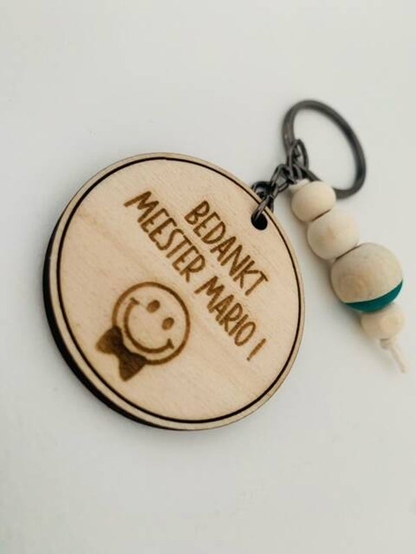 Dan kan deze houten sleutelhanger met houten kralen iets voor jullie zijn.